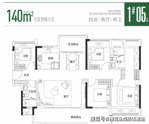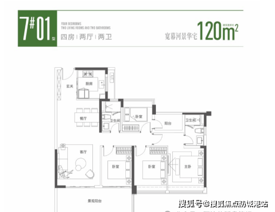 120㎡四房户型,可通过公交或电动车接驳,
