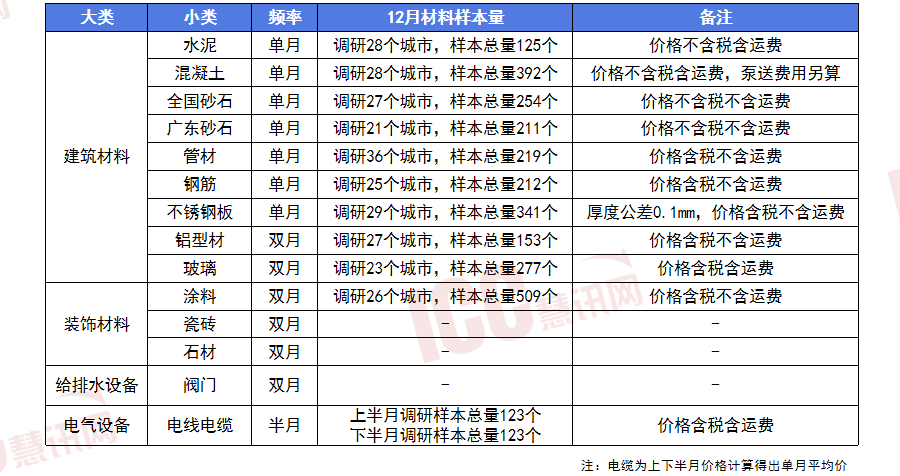 12月份,岁暮趋弱收尾。12月22日至23日,河砂中砂均价环比下滑2.0%,天然碎石全省均价环比下跌1.9%。